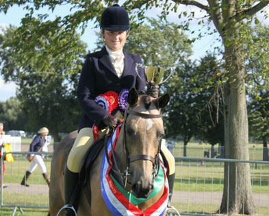 Pumpkin is fed on Speedi-Beet and a low calorie balancer (with unmolassed chaff added in winter). She is a very good doer so I exercise her as often as I can to keep her weight under control. Pumpkin is ridden five times a week in summer for one to two hours, mostly hacking to keep it varied with some schooling. She usually does at least one show a month depending what’s on, I like to do two a month with her; she mostly does championship shows now. She lives out 24/7 in summer, even the night before shows (she is a very easy pony to keep clean!). She does like coming in overnight in winter though as she is a bit of a wimp when it is cold.